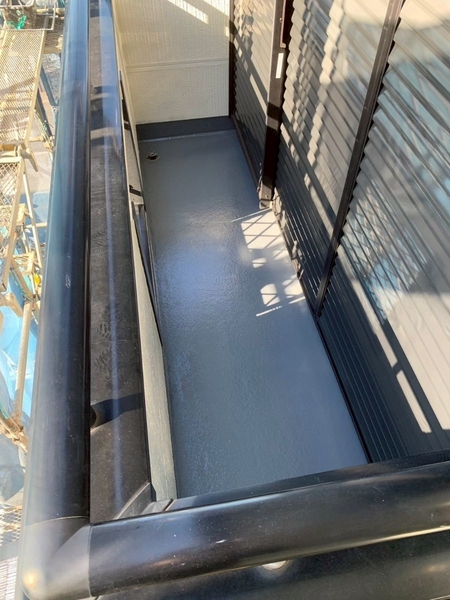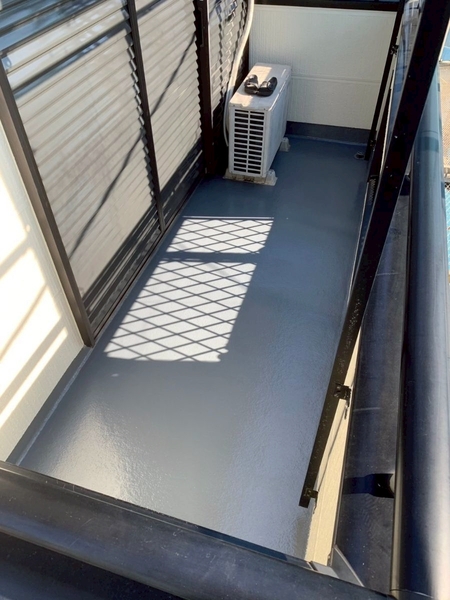 立ち上がり部分まで丁寧に塗布することで、ベランダ全体に統一感が生まれました。