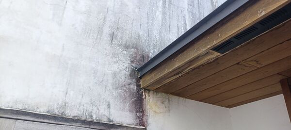 現地では、外壁の塗膜が広範囲にわたり劣化し、密着不良や浮き・剥がれが見られる状態でした。チョーキングも進行しており、防水性の低下が懸念される状況です。このまま上から塗り重ねても、早期剥離につながる可能性がありました。