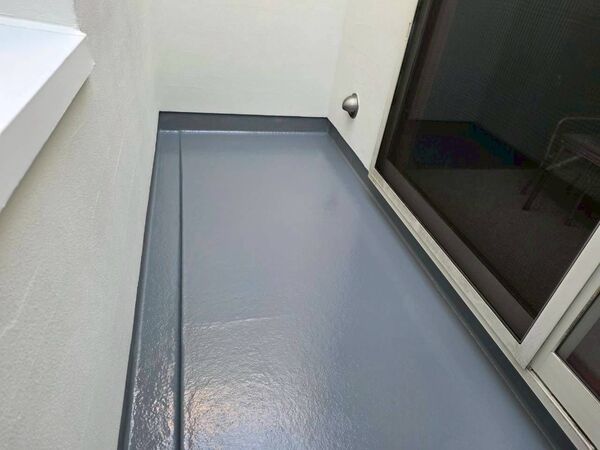 ベランダはウレアックス施工にて防水層を刷新。継ぎ目のない仕上がりで、高い耐久性と防水性を確保しました。