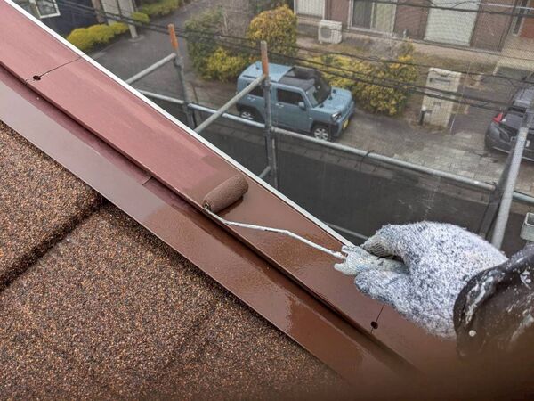 今回、いちずリフォームでは屋根の仕上がりに合わせて、板金部分の塗装をサービスで実施しました。