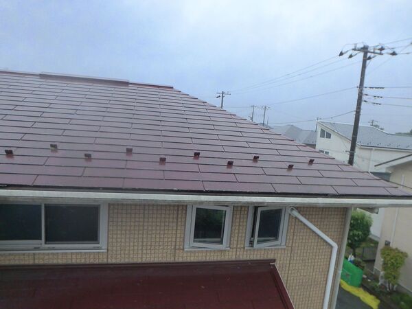 新しい屋根の色に合わせて板金塗装を行うことで、住宅全体に一体感が生まれ、より美しい仕上がりとなりました。