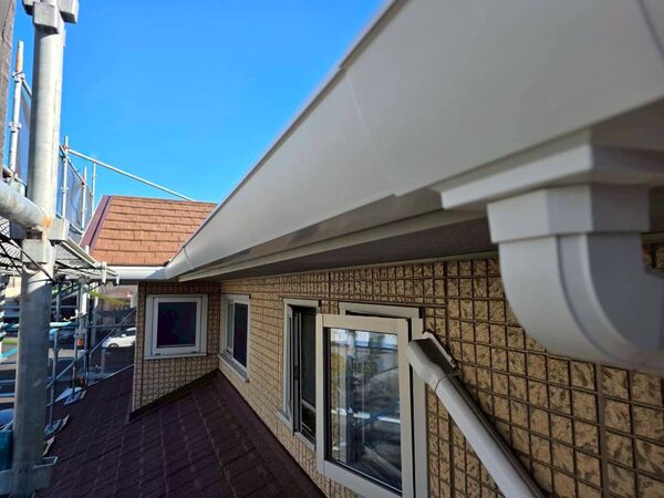 屋根とあわせて雨樋を新しくすることで、見た目だけでなく機能面でも安心感が高まりました。