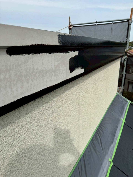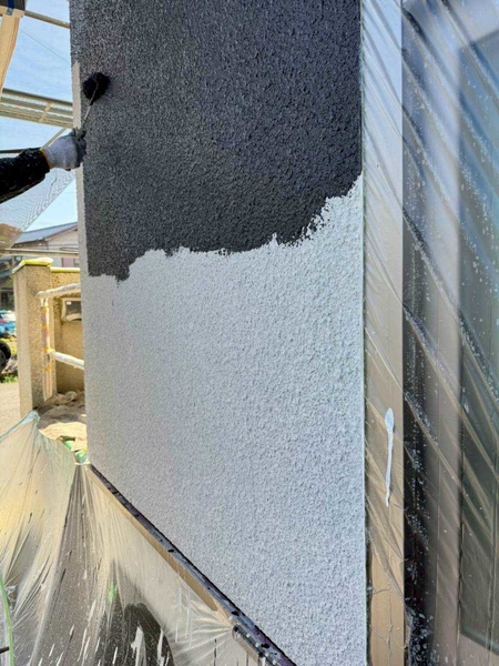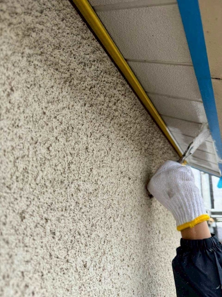 外壁は下塗りを2回行う4回塗り仕様。下地づくりを重視し、中塗りで塗膜に厚みを持たせたうえで、上塗り・仕上げ塗装により耐久性と美しい仕上がりを高めています。