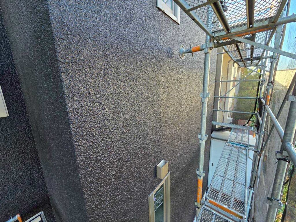 今回の施工では、下塗り2回を含む4回塗り仕様を採用し、屋根・付帯部まで約30年高耐久塗料で統一しました。
