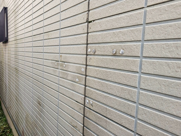写真の通り、外壁表面には黒ずみや色あせが見られ、紫外線や雨風の影響を受けている様子が確認できました。