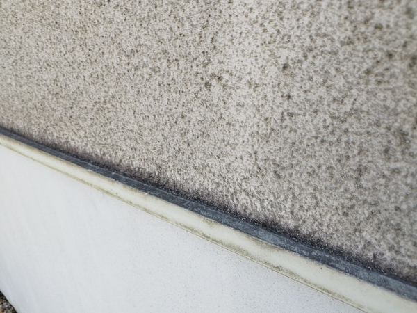 また、基礎まわりや立ち上がり部分にも汚れの付着が見られ、これは塗膜の防汚性が弱まっているサインのひとつです。