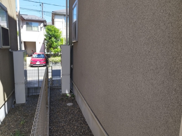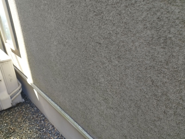 外壁の状態を確認したところ、表面には白い粉が付着する「チョーキング現象」が見られました。これは塗膜の劣化が進み、防水性が低下している状態を示しています。