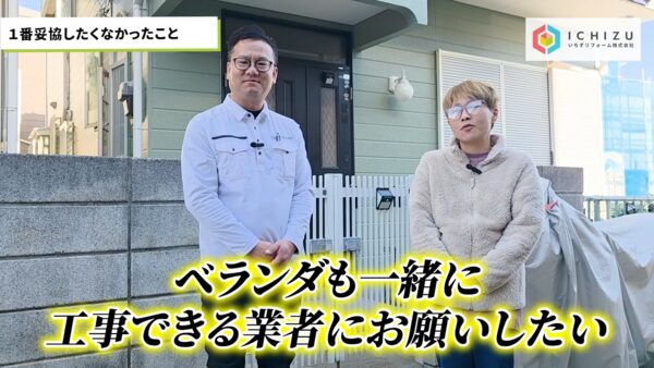 今回の工事では、足場を組むタイミングで気になっていたベランダも一緒に直したいと考え、外壁塗装だけでなくベランダ工事にも対応できる会社を探していたそうです。