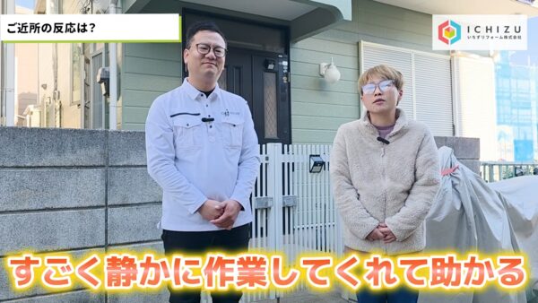 工事期間中は、隣の建物でも大きな工事が行われていたそうですが、いちずリフォームの作業については近隣の方から
