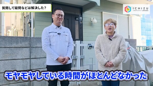 その条件に対応できることや、口コミから感じた安心感もあり、いちずリフォームにご依頼いただきました。