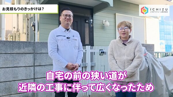 リフォームを検討するきっかけは、家の前の道路環境の変化とのこと。