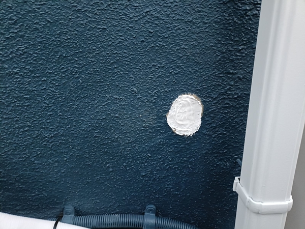 今回の外壁塗装では、上塗り工程による最終仕上げに加え、エコキュート交換に伴う外壁塗装の対応も行いました。