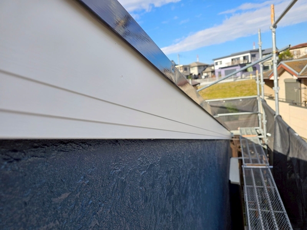 破風板はホワイトで明るさを保ちつつ、屋根板金はブラックトーンで全体を引き締めています。
