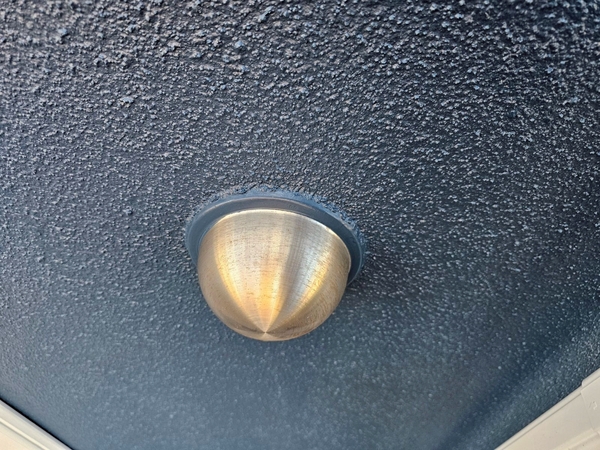 軒天はマルチエースで塗装。施工前にあったくすみもなくなり、明るく清潔感のある印象に。