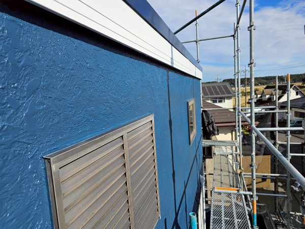 外壁がブルーの場合、付帯部をホワイトにすることでバランスよく仕上がります。