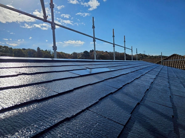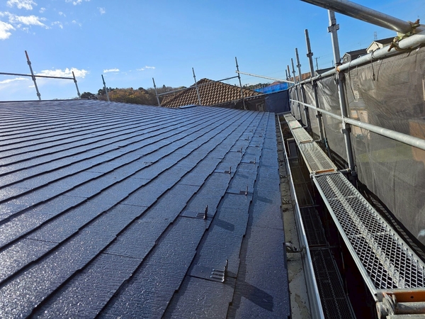 屋根の仕上がりを確認|落ち着きのあるミッドナイトブルー